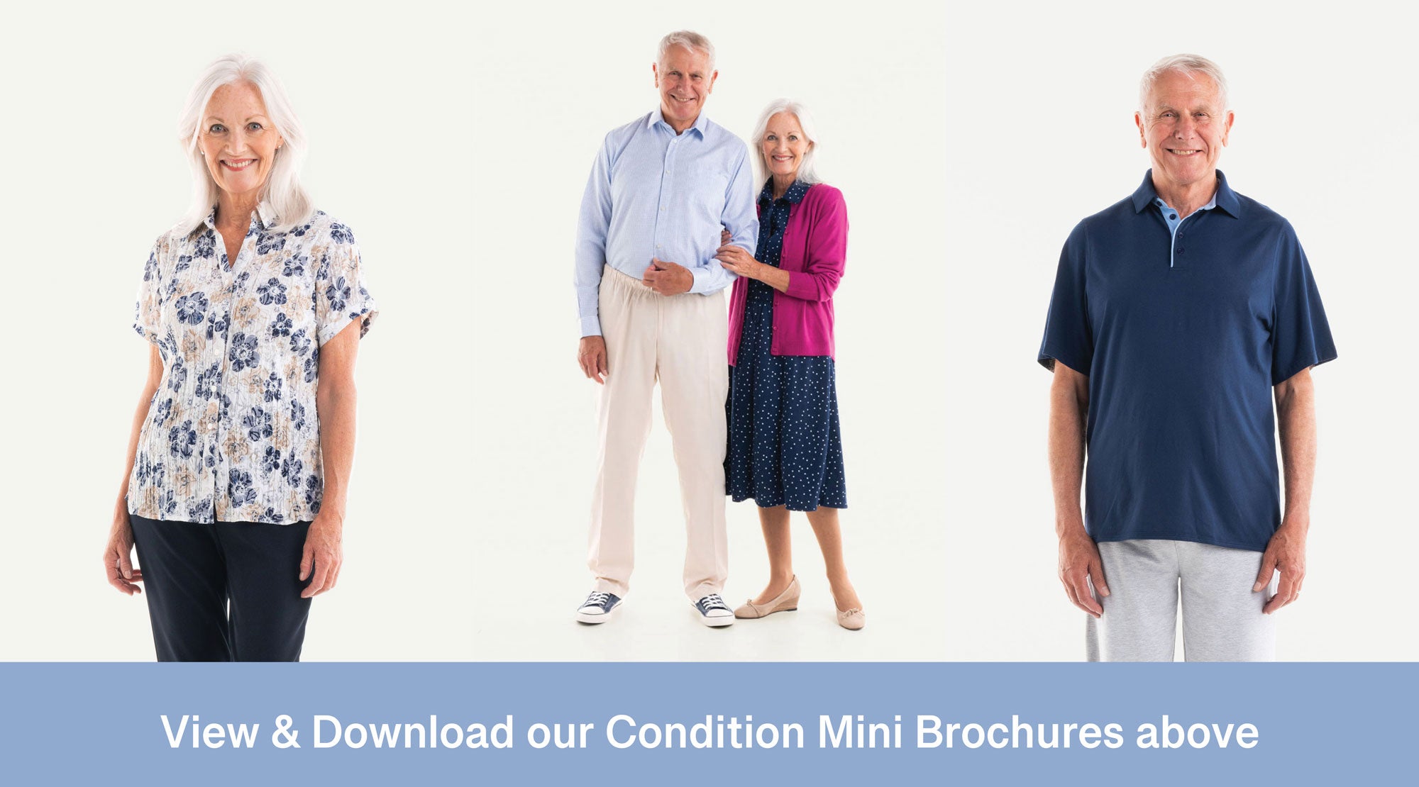We have created a number of Adaptawear mini brochures to help you identify the right product for yourself or a loved one. These are split into conditions featuring products for him and her. These mini brochures can be useful to print out and share if a relative or person you care for does not have access to the internet.