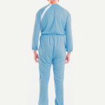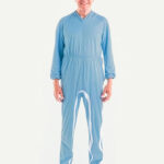 The all-in-one pyjamas are available in sky blue pure cotton on the inside and polycotton on the outside. The fabric is antibacterial.