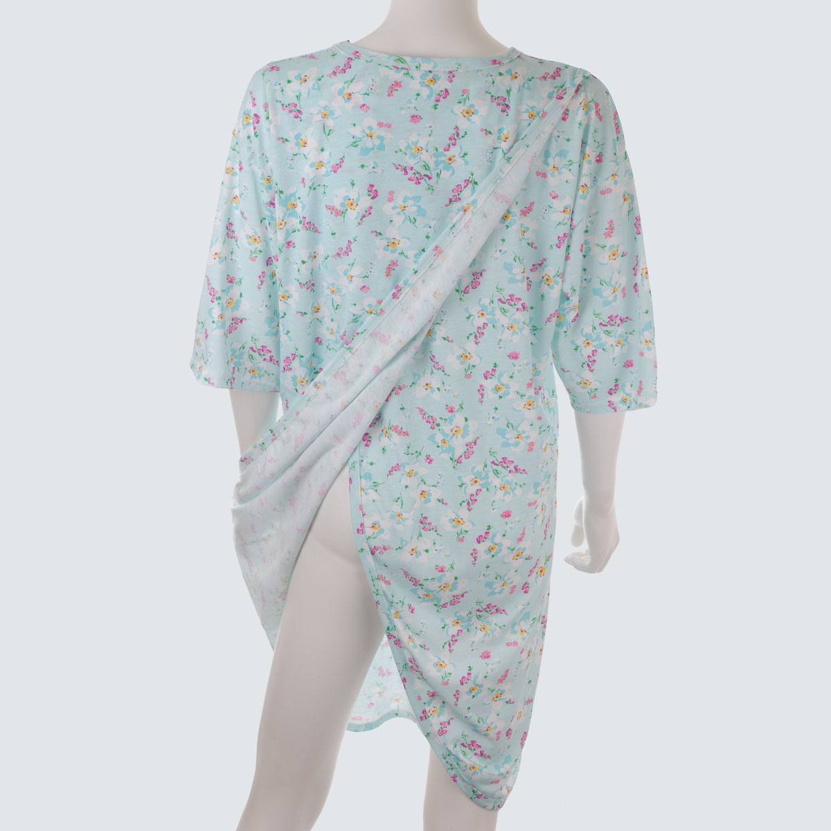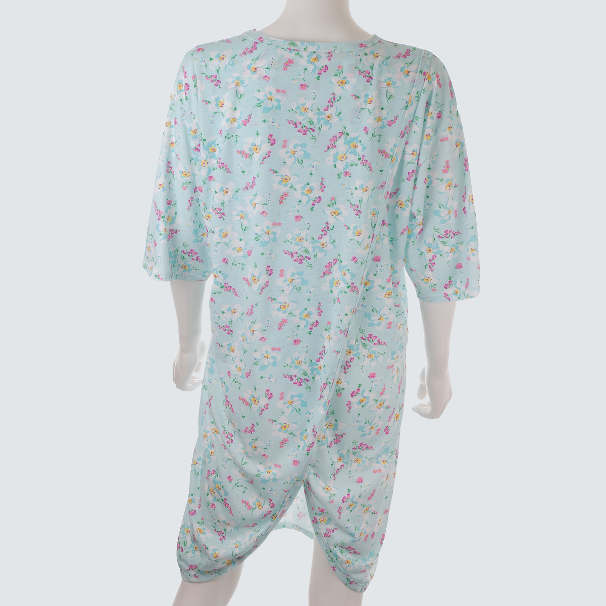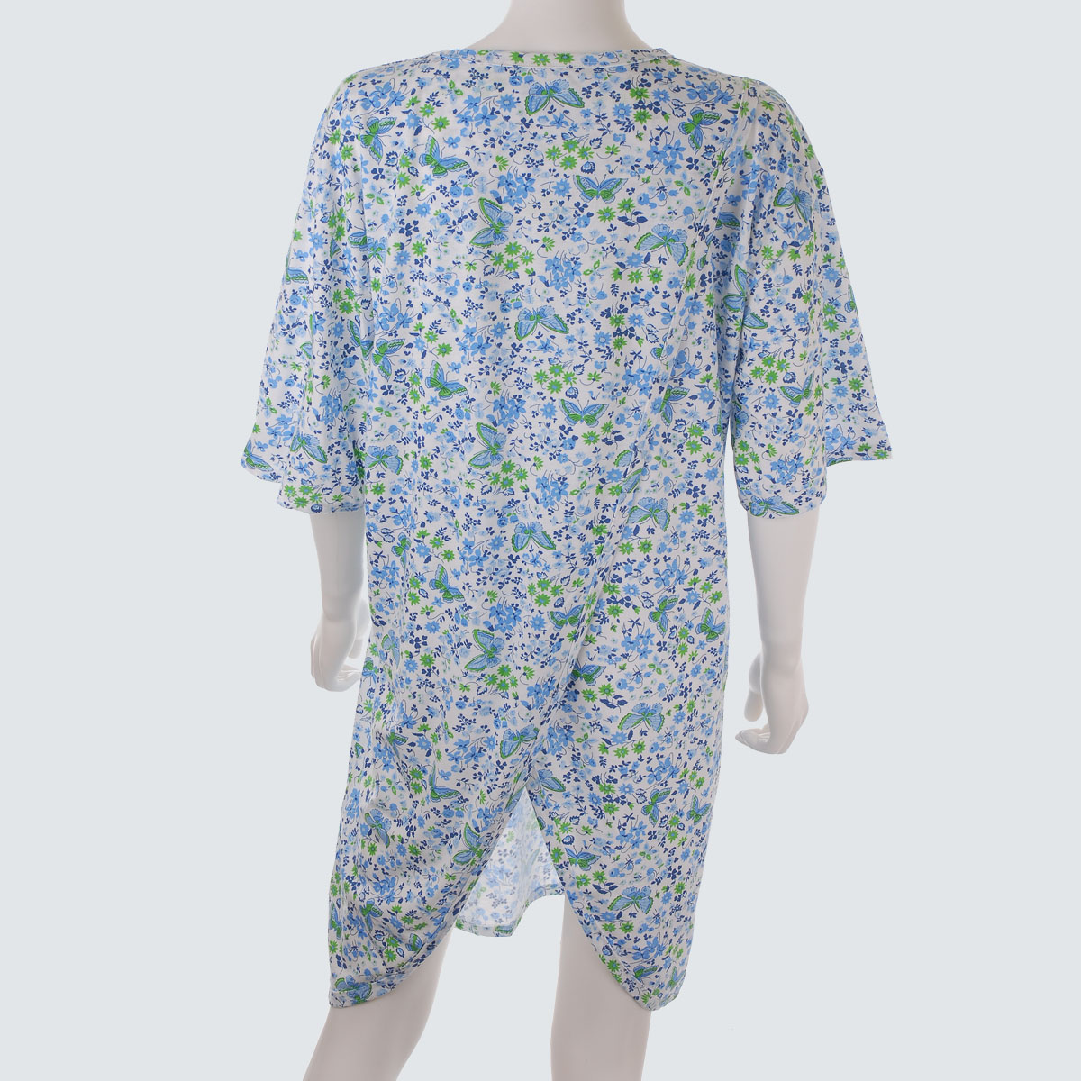 This ladies short-sleeve nightie features the unique Petal Back open back with substantial overlap for dignity and opens for easy dressing.