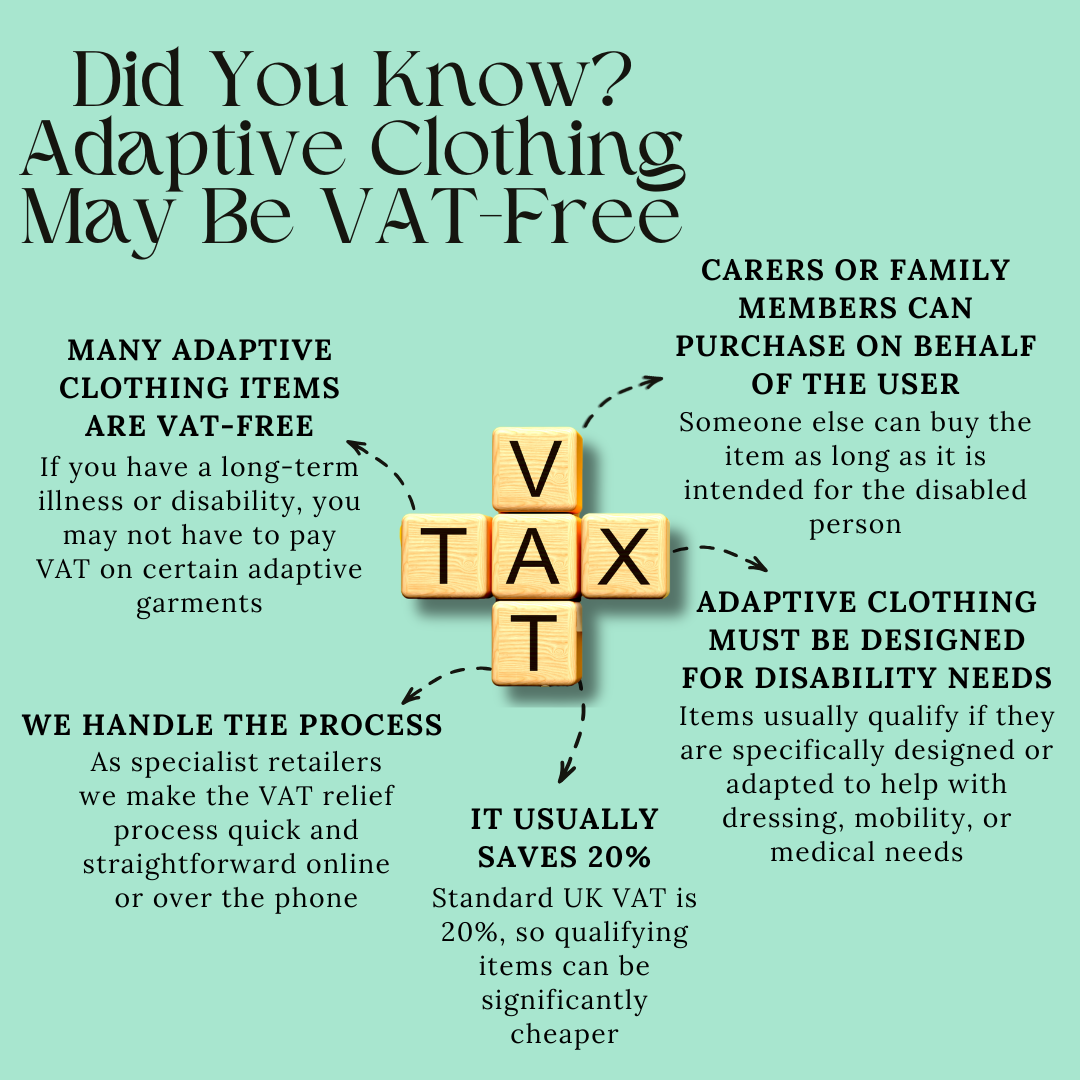 VAT relief is an important but often overlooked support available to disabled people in the UK. For customers buying adaptive clothing and assistive products, this relief can make essential items significantly more affordable.